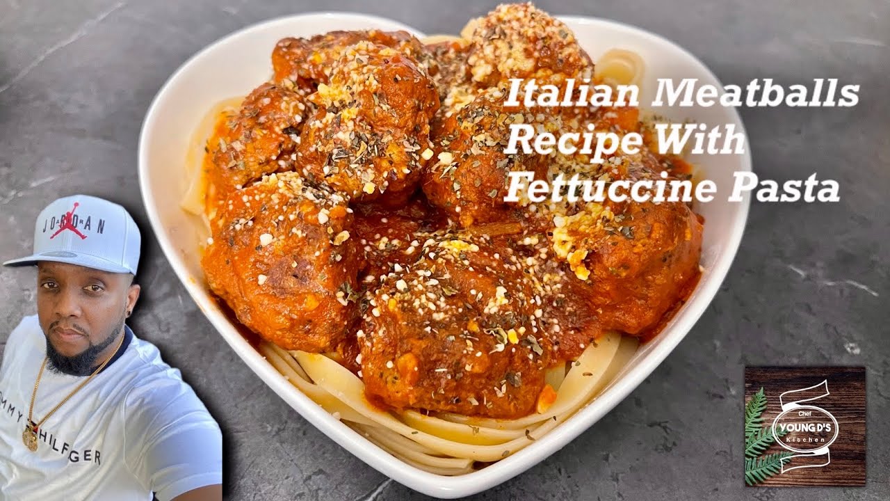 How to prepare a delicious authentic Italian Meatballs Recipe with Fettuccine Pasta easy step-by-step instructions by Chef Young D’s Kitchen