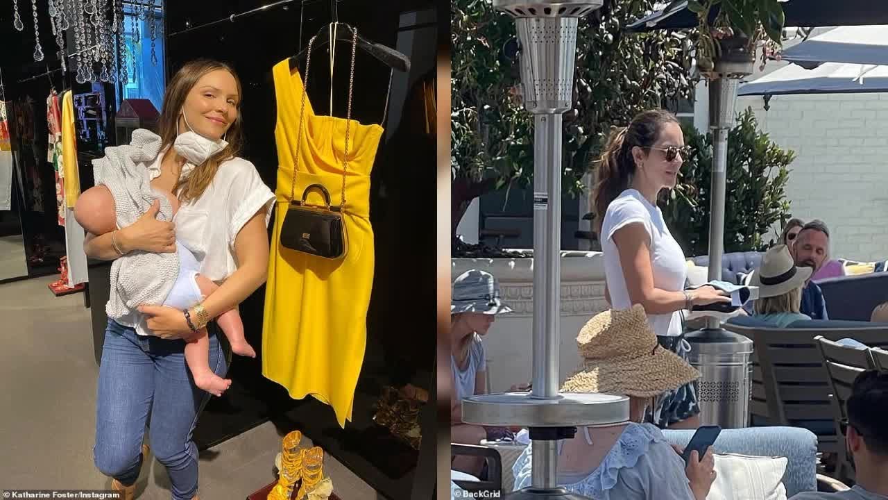 And Katharine McPhee was overjoyed to be spending time with her family as she dined al fresco with husband David Foster and their six-month-old son Rennie.