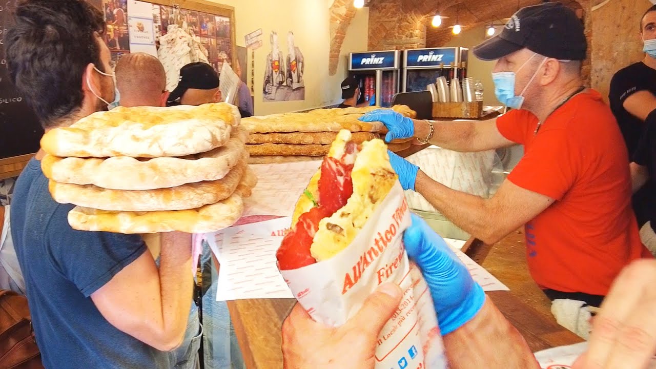 They have everything; pecorino cheese, rucola, many kinds of prosciutto crudo, mushrooms, sun-dried tomatoes, aubergines, truffle sauce and so on, and will help you to choose your filling, but, please, don’t ask them for any pesto, they will just make fun of you because pesto is from Genoa, so you cannot have it on a schiacciata in Florence.