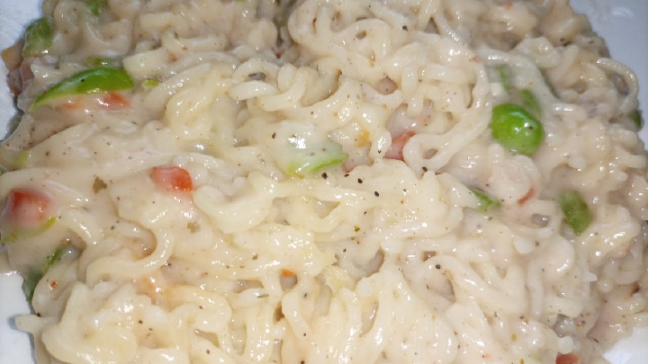 white sauce maggi,creamy maggi,cheesy maggi,maggi innovation,maggi creations,maggi variations,maggi in white sauce