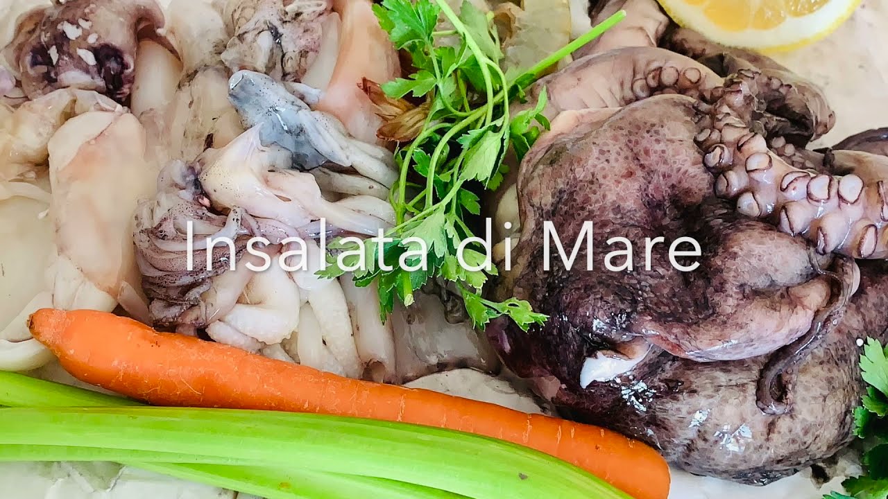 This Italian seafood salad is delicious! It’s loaded with octopus, calamari, shrimps, cuttlefish, fresh carrot, parsley and celery dressed in a sauce of lemon juice (limone from Amalfi), salt and extra vergine olive oil.