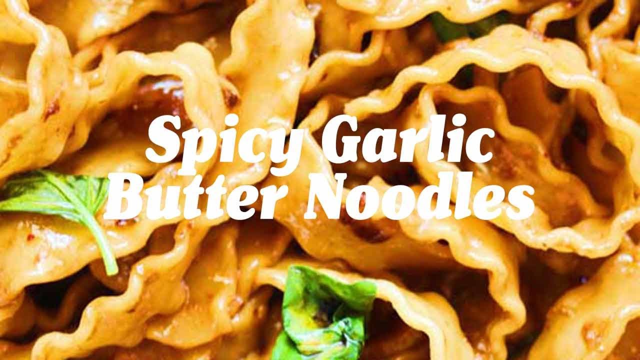 These spicy garlic butter noodles are so tasty! By combining flavors from China and Italy, we get these sweet, savory and spicy fusion noodles. You can use whatever pasta you’d like but I love these Malfadine noodles because the sauce clings to them so nicely!