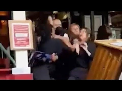 The prospective diners were visiting from Texas, and footage obtained by NBC New York shows a fight on the pavement outside Carmine’s Italian restaurant on Manhattan’s Upper West Side.