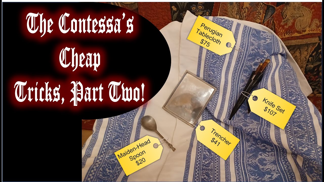 Creating a medieval(ish)/Renaissance-(esque) tableware kit on a shoestring budget, including cheaposimilars and cheaporeplicas! Shopping tips and information on authentic medieval dining/production practices! A shopping guide for medieval recreationists who want to have the right look, but cannot invest in expensive historic replicas, with a focus on drinking, serving and eating vessels. We discuss extant archeological pieces and provide suggestions for alternatives that fit every budget. Flatwear (spoons/knives), tablecloths, and trenchers – all discussed! The perfect guide for thrifting for medieval items.