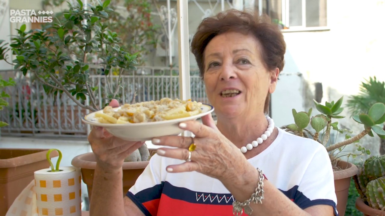 In the Naples area most cooks use dried pasta and Pasta con La Genovese, is a classic dish from the area. It involves loads of onions and some beef, and the key is long slow stewing. Although it takes a while, it’s dead easy and is absolutely delicious. Anna Maria shows us the recipe. We hired an AirB&B apartment and it turned out our host’s mum, Anna Maria, is a Pasta Granny – we had to film her.