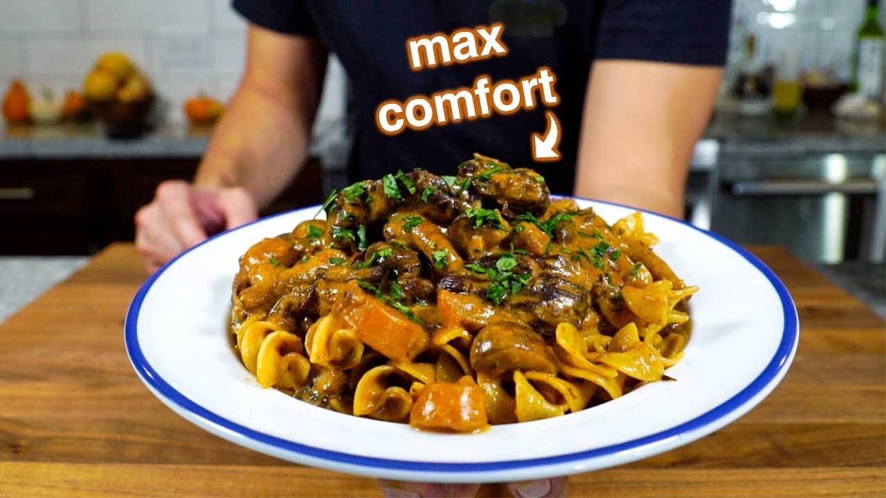 Today we make the beef stroganoff recipe that I wish my mom made me as a kid. Beef stroganoff was always a little bland but anything over noodles I love. We fix all the issues today by using the braising technique and instead of using steak, we use short ribs and some high-quality mushrooms. The recipe is a dream.