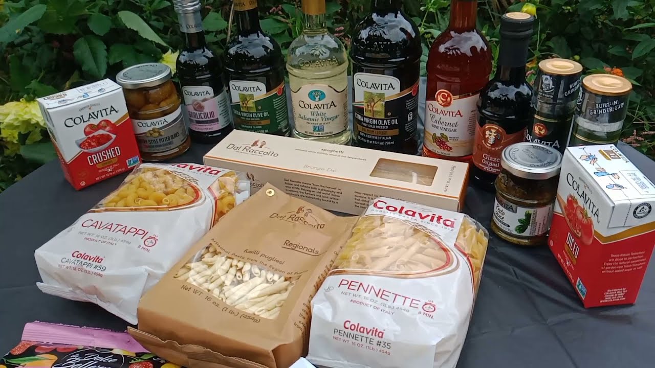 Items Included are:colavita garlicolio olive oil, Colavita Premium Italian Extra Virgin olive oil, Colavita Balsamic glace, Colavita White balsamic vinegar, Colavita Mediterranean extra virgin olive oil, Colavita Bella di Cerignola olives, Colavita Pesto in EVOO, Colavita Cabernet wine vinegar, Dal raccolto artisanal Italian Fusilli, Colavita Cavatappi Italian pasta, Dal raccolto Italian Linguine, Colavita Penne mezzane Italian pasta, Colavita Diced Italian tomatoes, Colavita Crushed Italian tomato, Colavita Arborio Rice, Colavita Sea Salt Grinder, Colavita Black pepper Grinder, Fida Bonelle jelly candy, Colavita gift tower trio