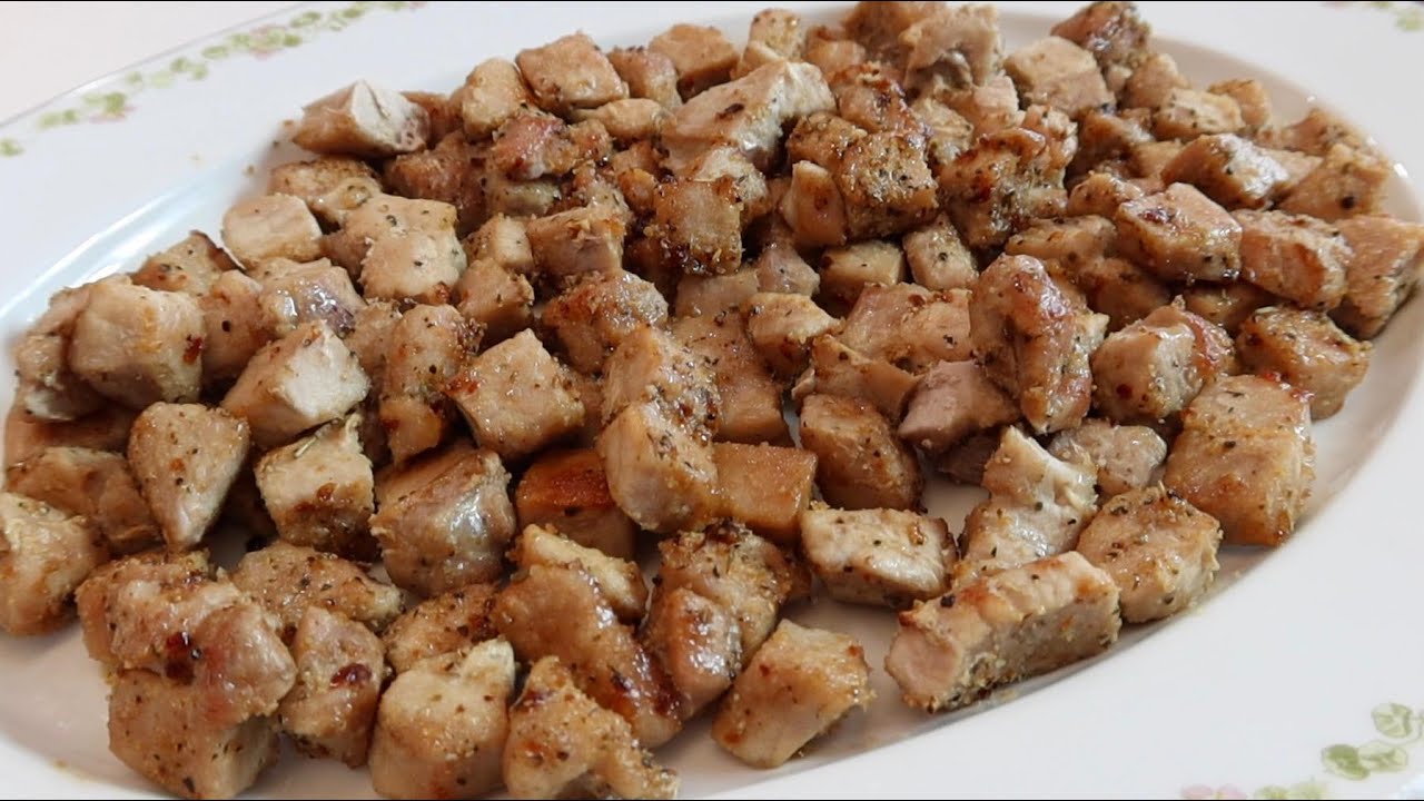 In this video, Betty demonstrates how to make pork bites that are flavored with Italian herbs and spices.