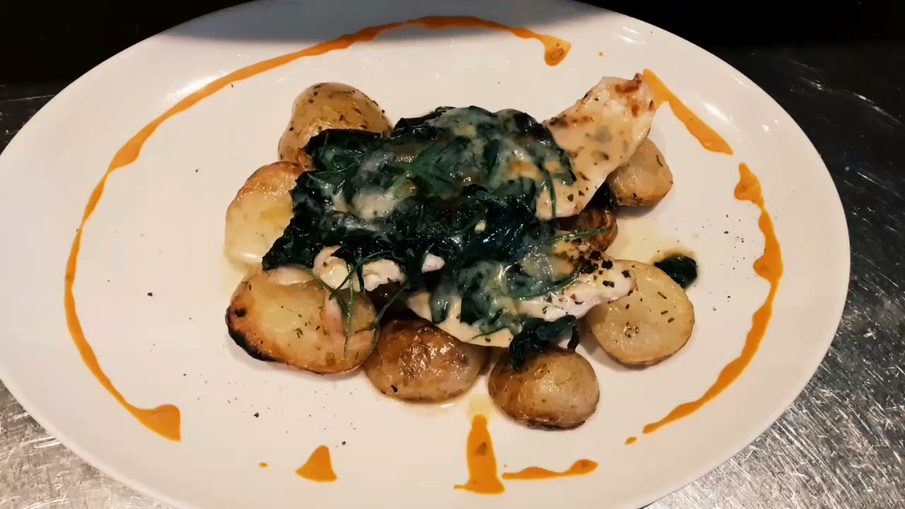 This is an Italian dish…basically baked potatoes and grilled chicken….with baby spinach and cheese.