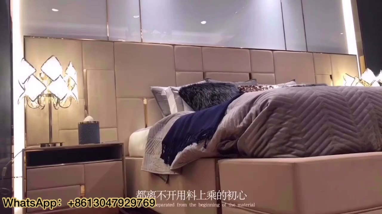 How to decor your bedroom ? This king size bed luxury bed upholstery genuine leather , gold stainless steel bed frame and solid wood bed , can match this leather bed with bed bench , bed table and tv stand and dresser , they are in whole same design style , your master bedroom deserve it , luxury and elegant and beautiful, do not miss it if you want to buy one bed.