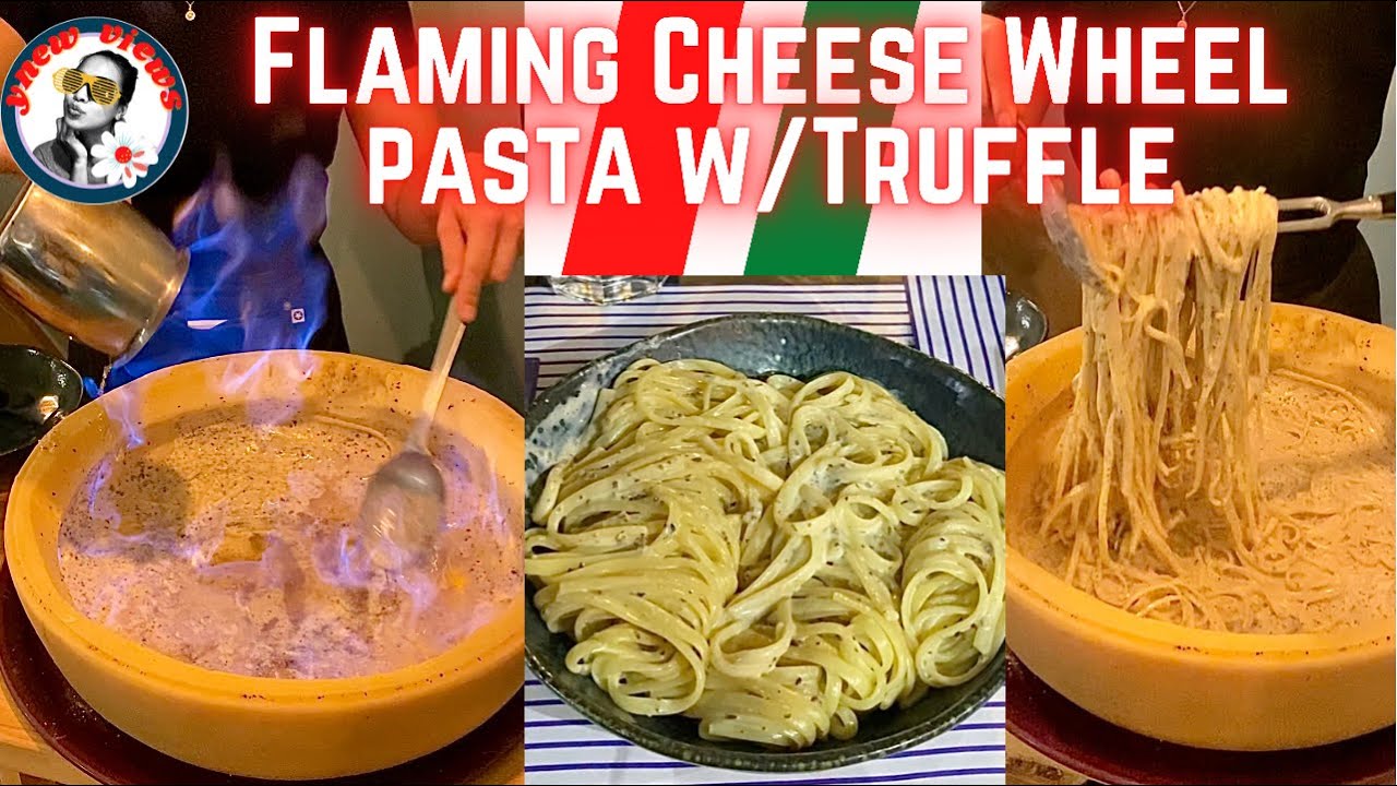 After pasta is boiled They then Put in in a Big Parmesan Cheese Wheel that was soften from a Flambรฉed Italian Rum..