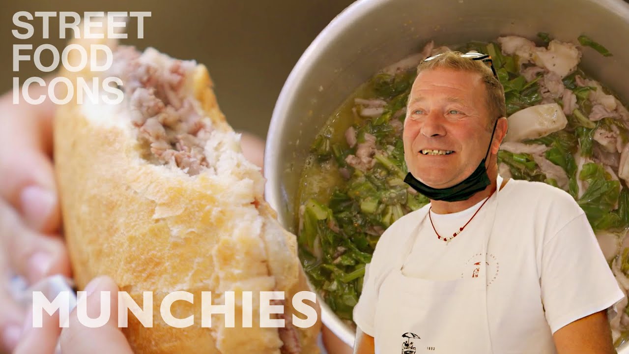 Florence is well known for art, big steaks and… lampredotto. You can grab this offal sandwich at any corner of the city. To make lampredotto, the meat is slow-cooked in a vegetable broth, seasoned with herbs and served with green sauce in a bread roll. Orazio is one of the best street food vendors in the city, and we tasted his famous panino and learned how it’s made.