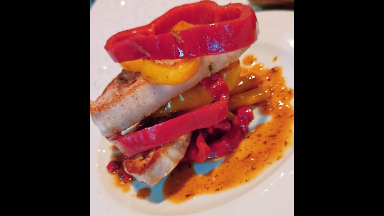 today was a rainy Friday so Rina made a quick lunch using peppers which are in season. Pork chops for her and a Big Mac(kerel) for Tim.