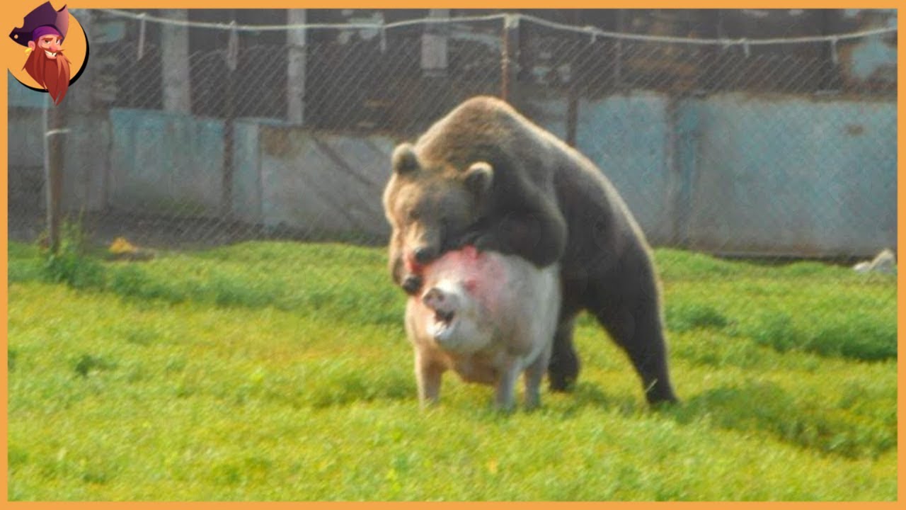 Next, this black bear is wrestling with a wild boar, and the people filming the incident honk to try and scare the bear away, but I think the bear is so focused on the boar, it doesn’t even hear the horn as the bear continues to pound the boar. This young bear chases two black boars across the forest. I don’t think the bear will catch up to them, but you never know. Finally, watch this bear try to kidnap a pig from its pen. The other pigs are ignoring the matter, even though they hear their friend squealing like a “mother brother”. The bear is pulling on the pig’s back, ripping some of its skin off, but the pig is so heavy, the bear isn’t able to lift it up and bring it over the fence. I wonder why the people filming doesn’t intervene because this isn’t happening in the wild. This bear is attacking a farm and its pigs.