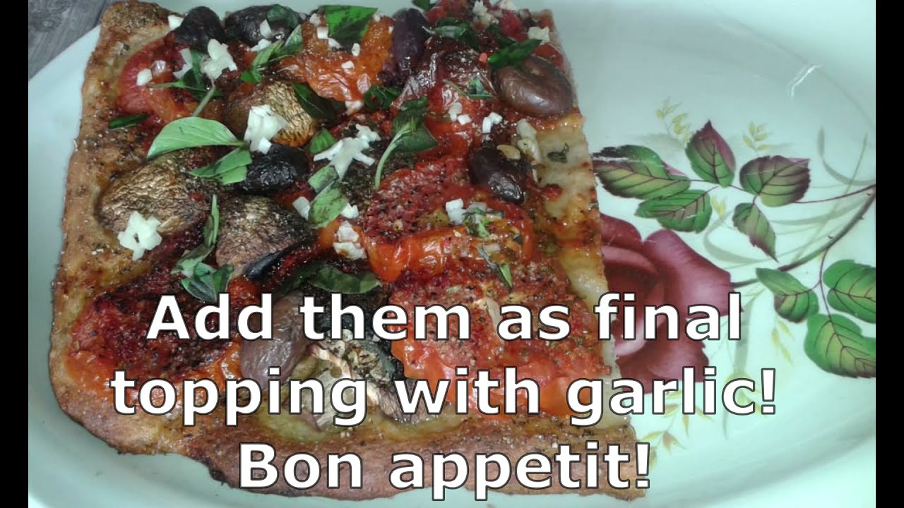 Mix the dough ingredients, knead the dough and set it aside for at least 30 minutes in a warm place. Spread the dough thinly on an oiled or floured baking tray; or use baking paper to prevent sticking. Add 1 tbsp of olive oil and spread on the dough. Add all of the toppings (except final toppings) and make sure to add the 2 bay leaves on top. Drizzle with 1 tbsp of olive oil. Cook in a pre-heated oven at 200 oCelsius until the toppings stop releasing water. Take out from the oven, remove the bay leaves and add the final toppings.