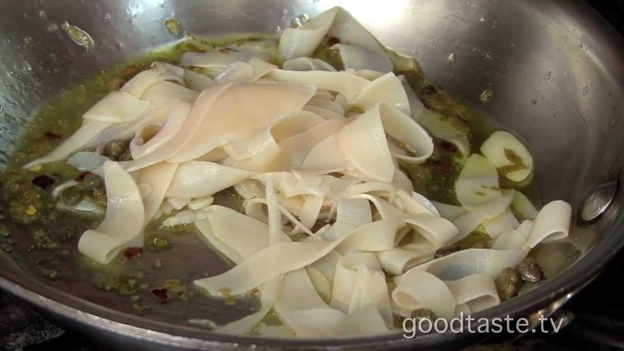 The accolades don’t end there. Chef de Cuisine, Mark Pensa, was recently named one of the Top 5 Rising Star Chefs by the San Francisco Chronicle. A master of modern Italian, Chef Pensa agreed to guide us through cooking the restaurant’s cuttlefish ‘tagliatelle’ with capers, chili flakes, lobster, and agretti. Sounds complex, but the best way to think of it is as a pasta dish without the pasta. The cuttlefish (related to the ‘cephalopod’) actually mimics it! Sliced paper thin it resembles pasta, with the agretti adding a nice crunchy, cucumbery flavoring. Gluten-free, carb free and gourmet…just incredible.