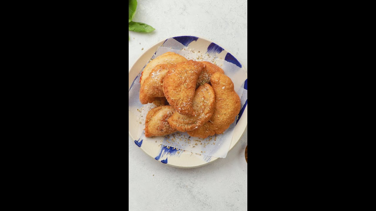 These delicious mini calzones, also known as Italian panzerotti, are stuffed with mozzarella, tomato sauce, and fresh basil.