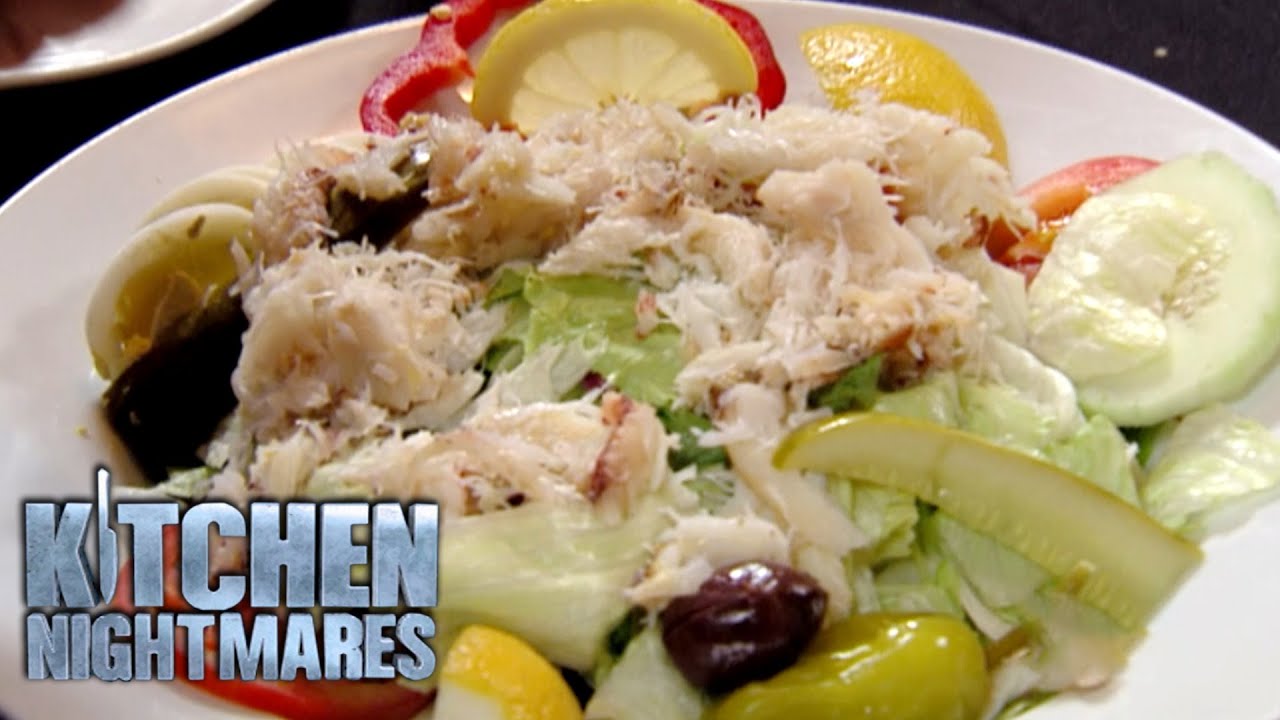 This meal has Gordon Ramsay gagging! The whole Greek sampler is comprised of canned goods. And his next dish, a Crab Louie, is to no surprise, also canned! Gordon Ramsay’s meal at Spin-A-Yarn is off to a terrible start. Watch more restaurant drama on Kitchen Nightmares, FREE on Dabl Network TV! Visit for where to watch! #Dabl #KitchenNightmares