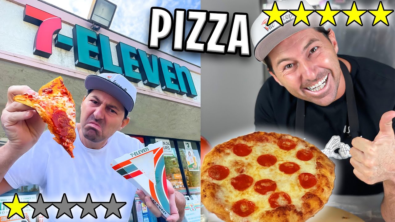 Fui a probar por primera vez una pizza 7-eleven. Mi reacciรณn no fue tan buena, asรญ que me fui a casa y lo rehice, pero en una calidad muy alta que puedas pensar. Este es un video de receta completo, por favor compรกrtelo con amigos y dale me gusta. gracias a todos