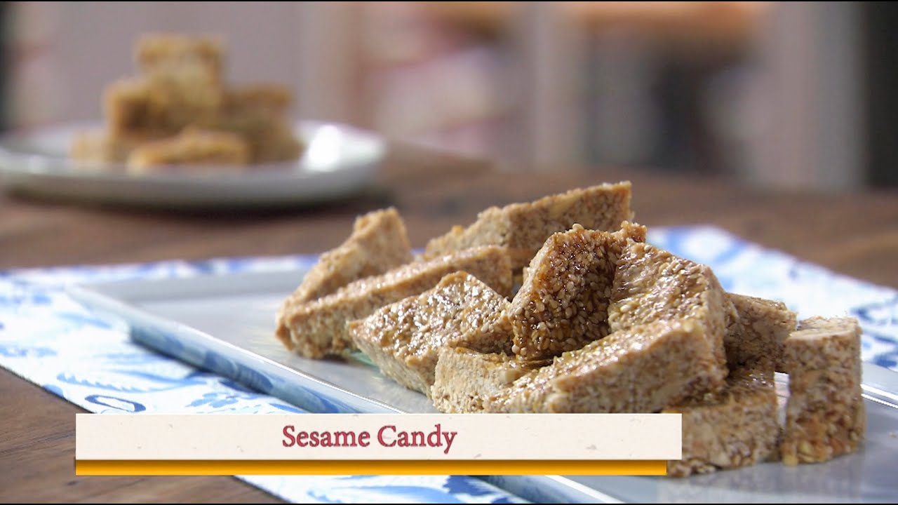 Here’s another sweet that, like figs stuffed with almonds, is usually made around the holidays in Calabria. It is simply a caramel syrup with sesame seeds stirred in, poured onto a counter to cool in a thin layer, and cut into bite-sized candies. A smooth, nonporous surface like marble, granite, or stainless steel is best for the cooling; avoid porous wooden surfaces or Formica. You can find the full recipe here –