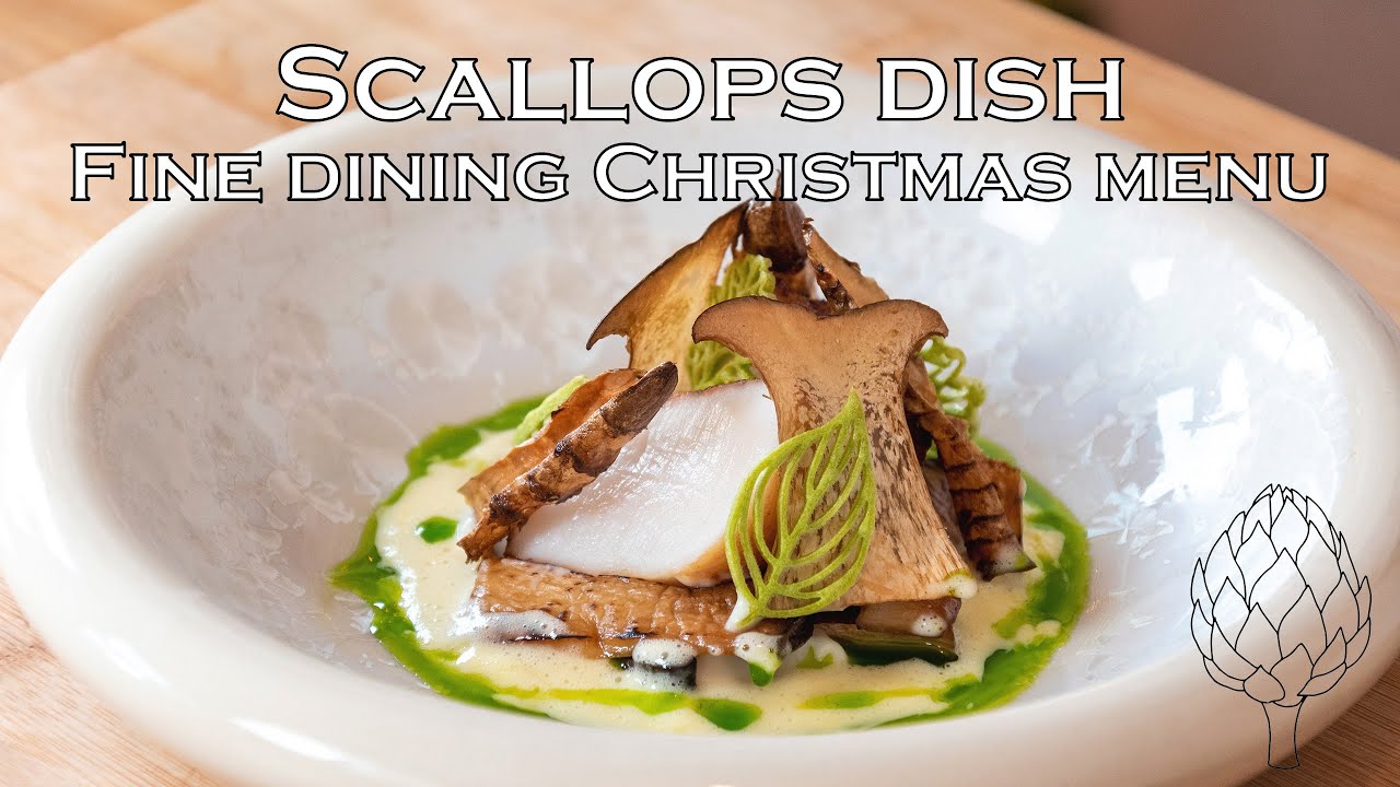 Hey guys! Today we’re going to make the second course from my Christmas menu special! We’re going to make seared scallops with Jerusalem artichoke, lovage crisps and king mushroom. Really delicious, so enjoy guys!