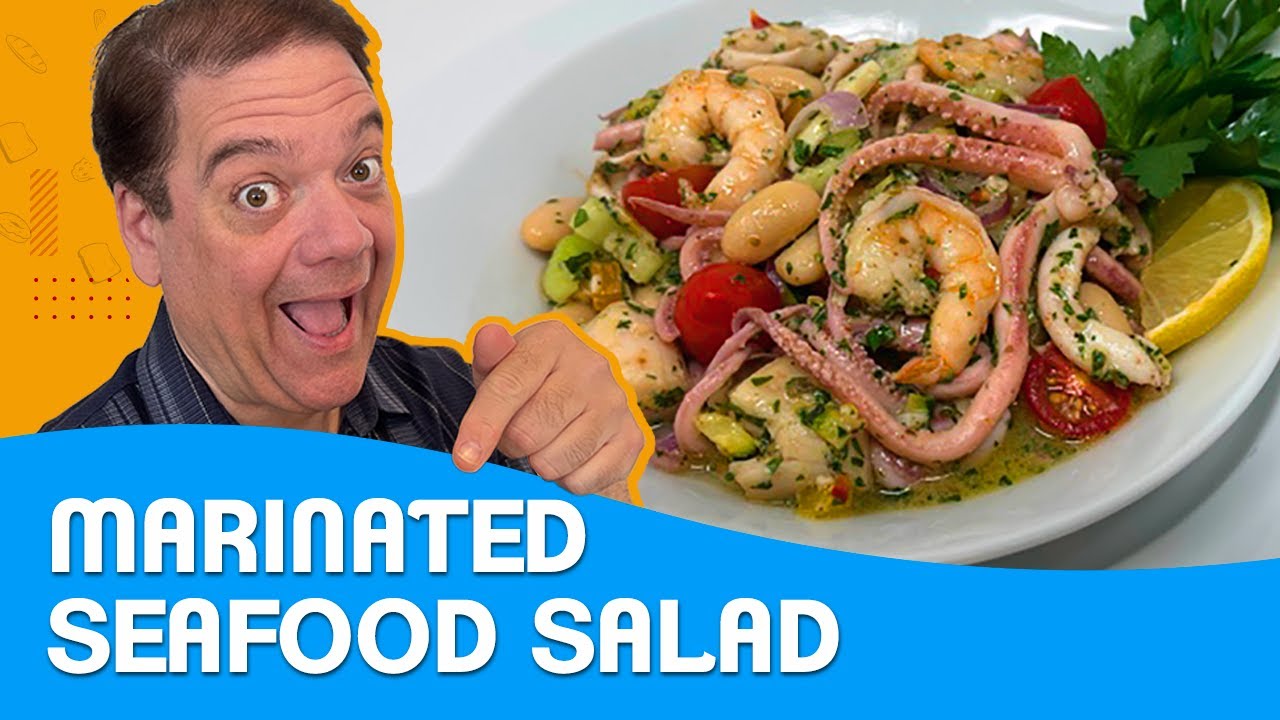 Seafood Salad the perfect side dish recipe. This Italian Seafood Salad is made in part to help celebrate the Italian-American holiday, Feast of the Seven Fishes. In this seafood recipe, we have some of my favorite ingredients and some unique ingredients to help elevate your cooking in the kitchen. So, spice up your recipe game with this simple to make seafood recipe!