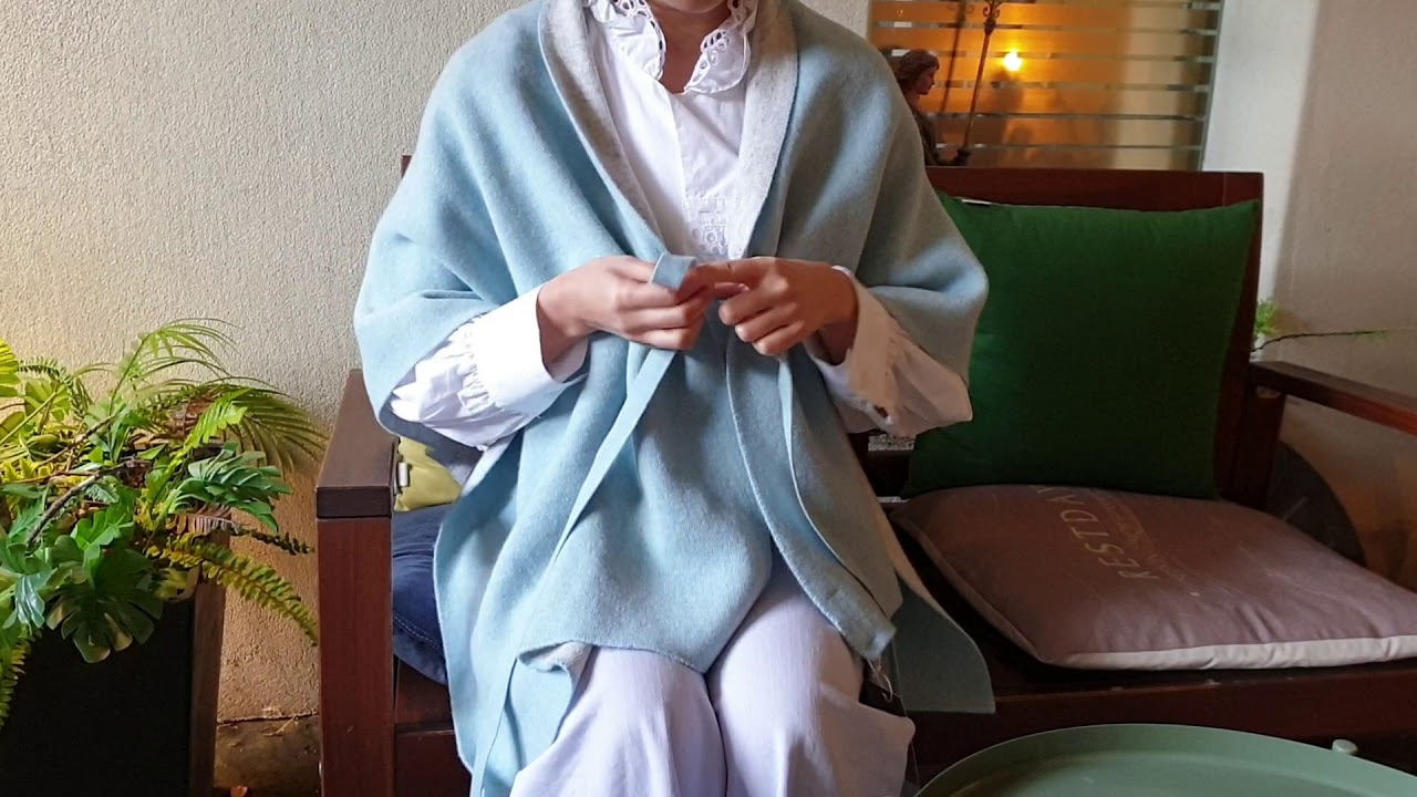 Soft and luxurious Italian cashmere shawl gives you light but cozy feeling for all season and goes well with any outfits. This reversible shawl can be worn in two colors. Cute string closure gives you a feminine look.