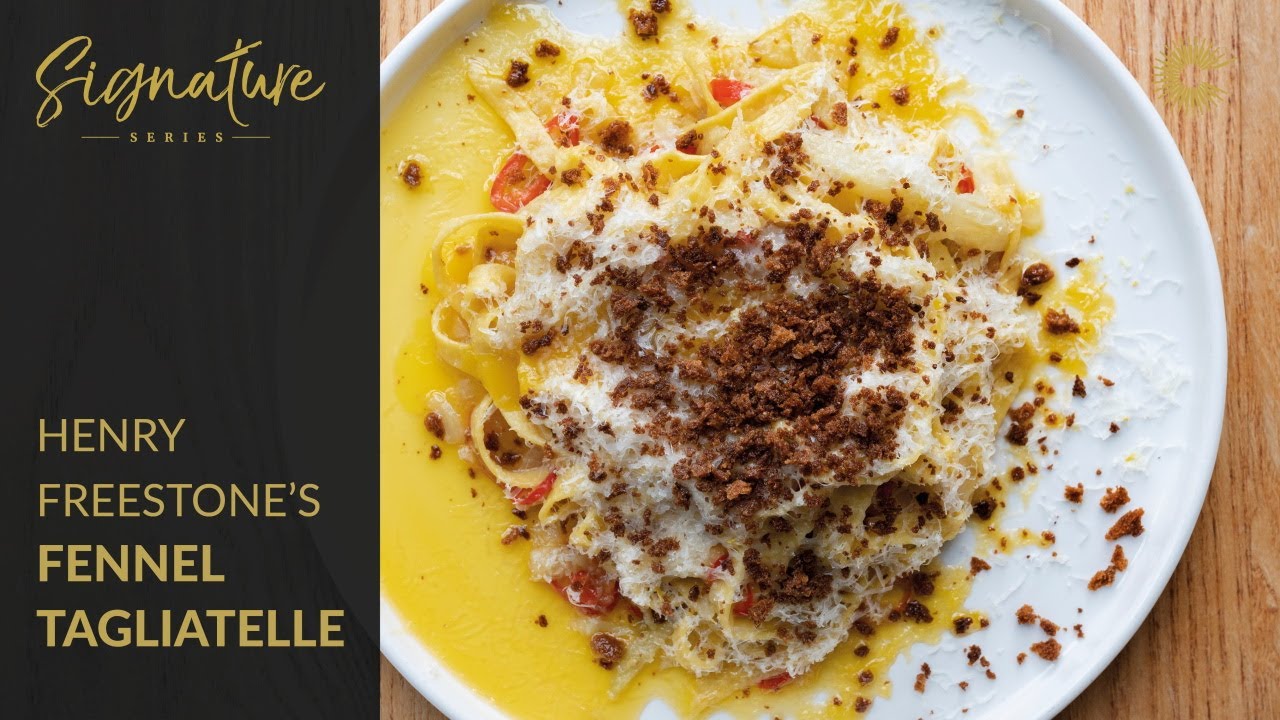 Fresh pasta is a wonderful thing, and this silky tagliatelle dish from Henry Freestone shows you how to make it from scratch. Served with a buttery slow-cooked fennel, chilli and garlic sauce, it’s topped with an extra egg yolk for added richness, plus a blanket of Parmesan and crispy breadcrumbs for crunch. A perfect dish for any occasion, although if you’re strapped for time during the week you can simply use ready-made fresh tagliatelle and focus on the sauce.