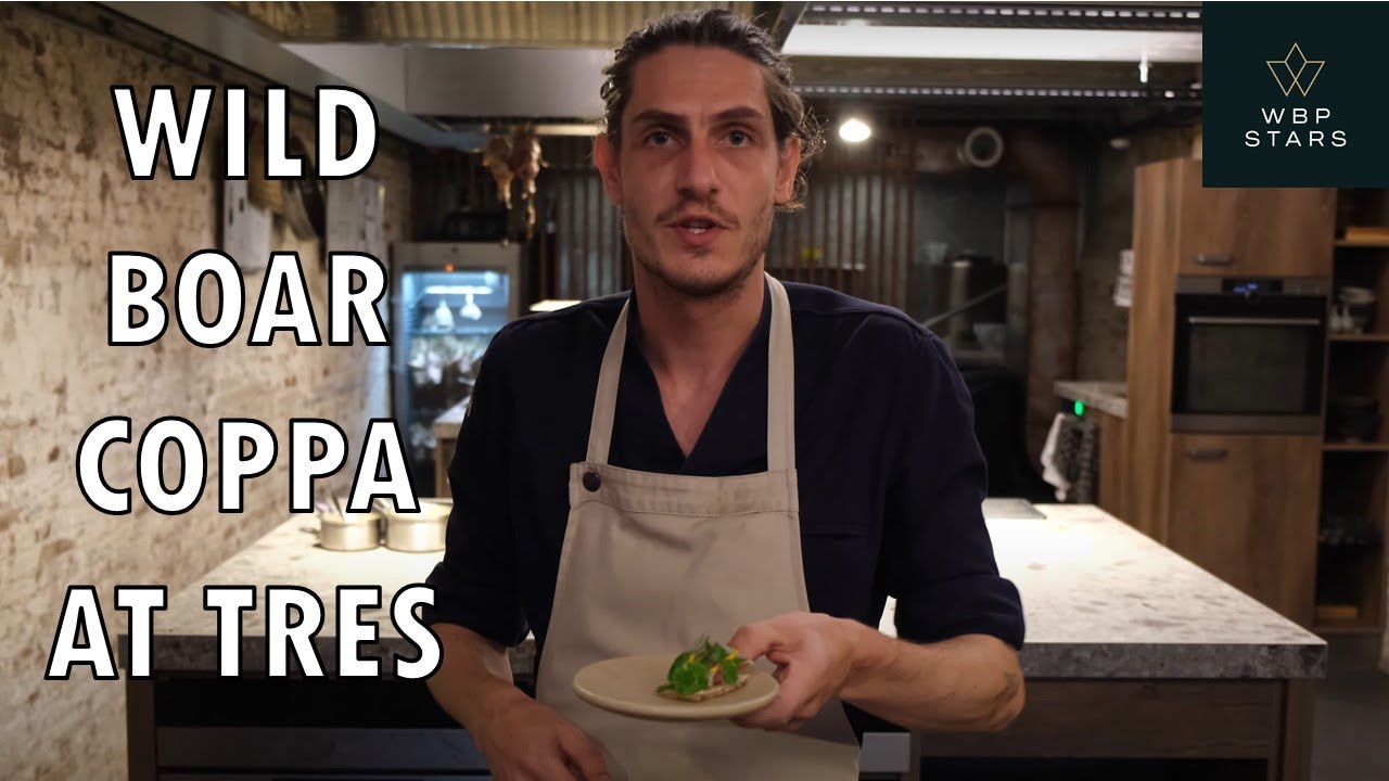 Chef Michael van der Kroft prepares an amazing snack at his super creative restaurant Tres in Rotterdam: rye bread with wild boar coppa and radish.