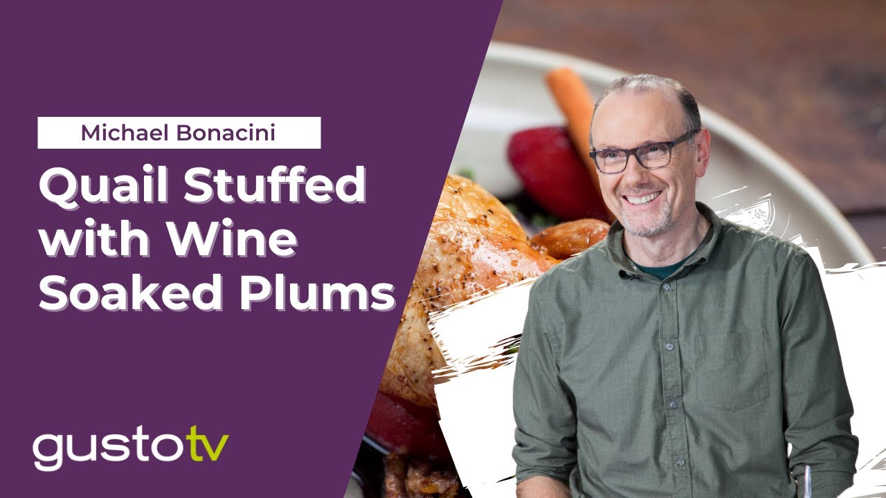 Roasted quail, stuffed with Italian sausage, cabbage, apple and onions and accompanied with wine soaked plums. An elegant dinner, but comforting with aromatic flavours.