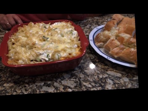 Now, lets assemble the casserole. Layer starting with 1/2 the noodle mixture then 1/2 the meat mixture & layer with grated cheese then do same thing again. I add extra cheese on top layer.