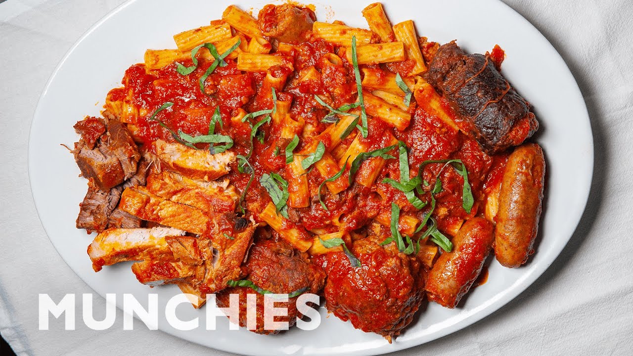 Frank Pellegrino, Jr. of Rao’s in NYC shares a classic family recipe: Sunday Gravy. In this version of the iconic Italian-American staple Frank braises 5 varieties of meat in a rich, velvety tomato gravy, then serves it over al dente pasta with plenty of fragrant basil.