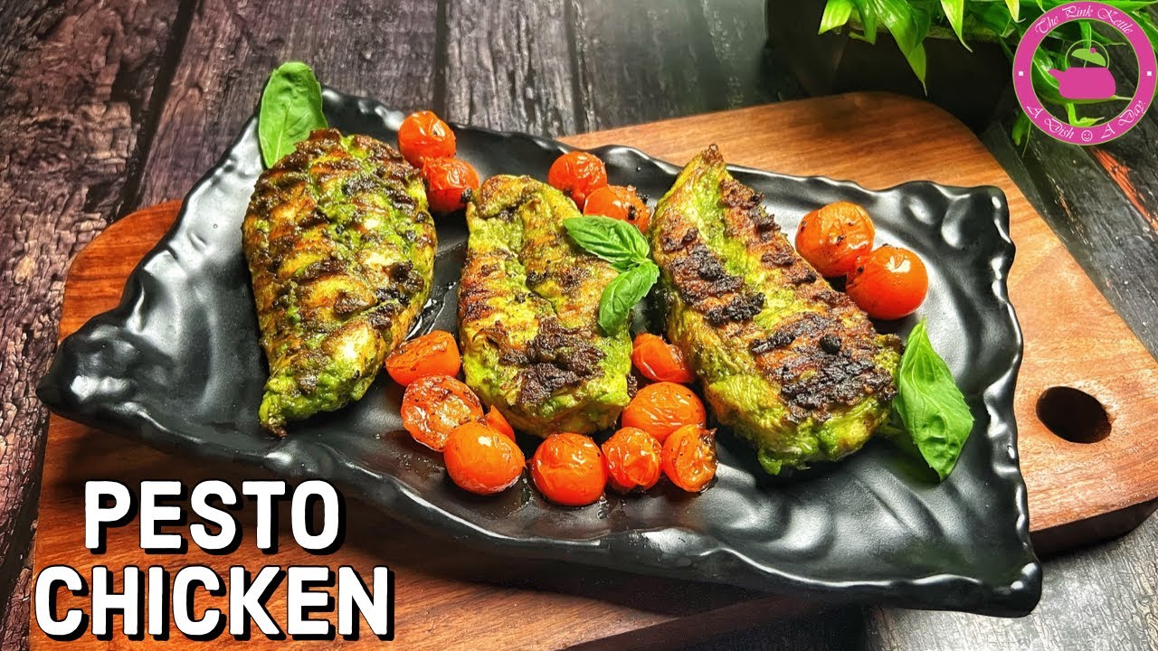 Pesto grilled chicken,smothered in a creamy, homemade basil pesto!ย served withย cherry tomatoes, this chicken is low carb.A quick n easy recipe!