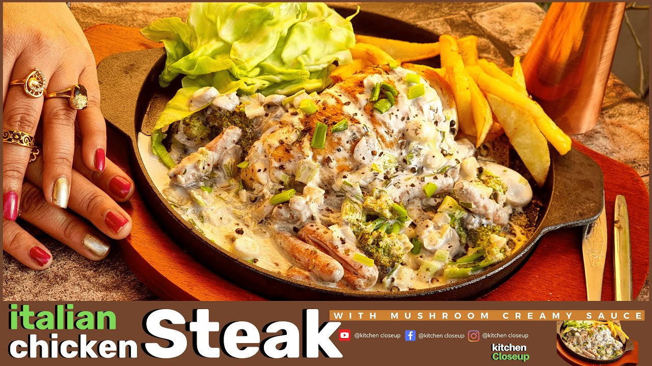 Today Kitchen Closeup Presents A New Year 2022 Special Recipe Named Italian Chicken Steak With Mushroom Creamy Sauce Recipe Which Every One Likes All Age Group Of People Likes Kitchen Closeup Fresh Recipe Specially Chicken Steak Lovers .