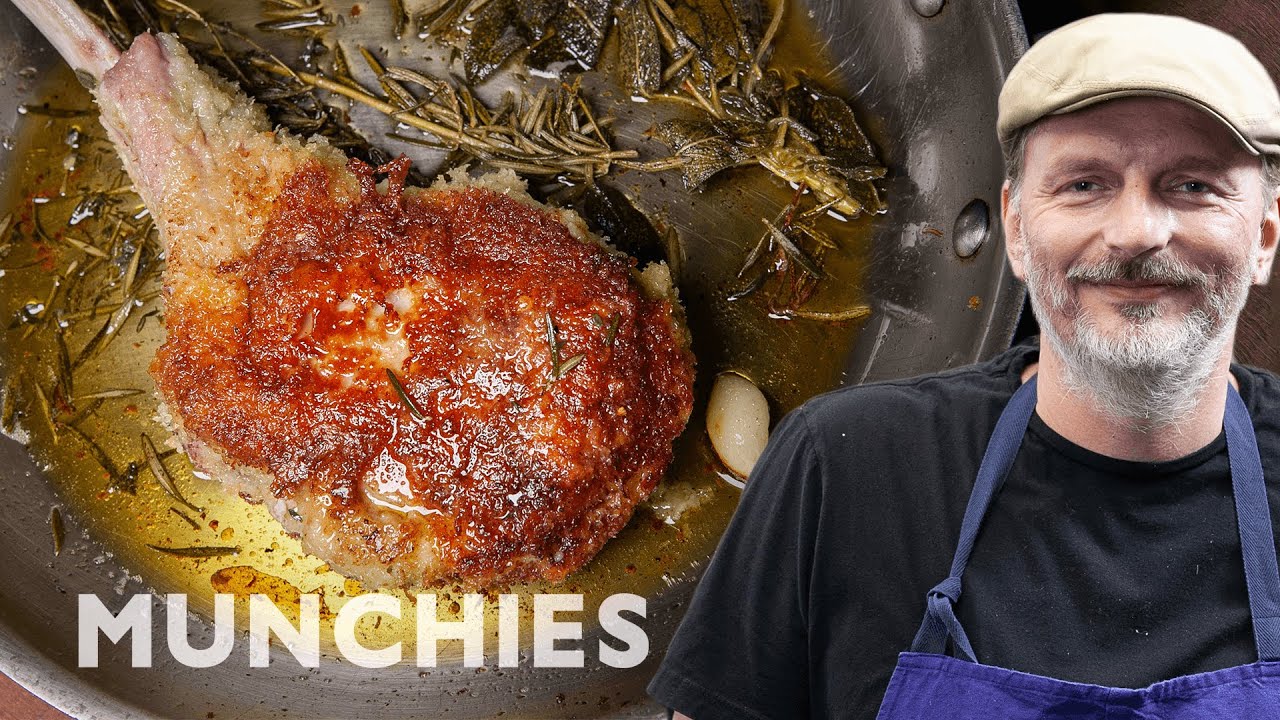 American chef and restaurateur Andrew Carmellini is in the MUNCHIES Test Kitchen making Veal Milanese. He breads tender, bone-in veal chops before basting them in butter and aromatic herbs for a simple and crispy, yet sophisticated, meal.