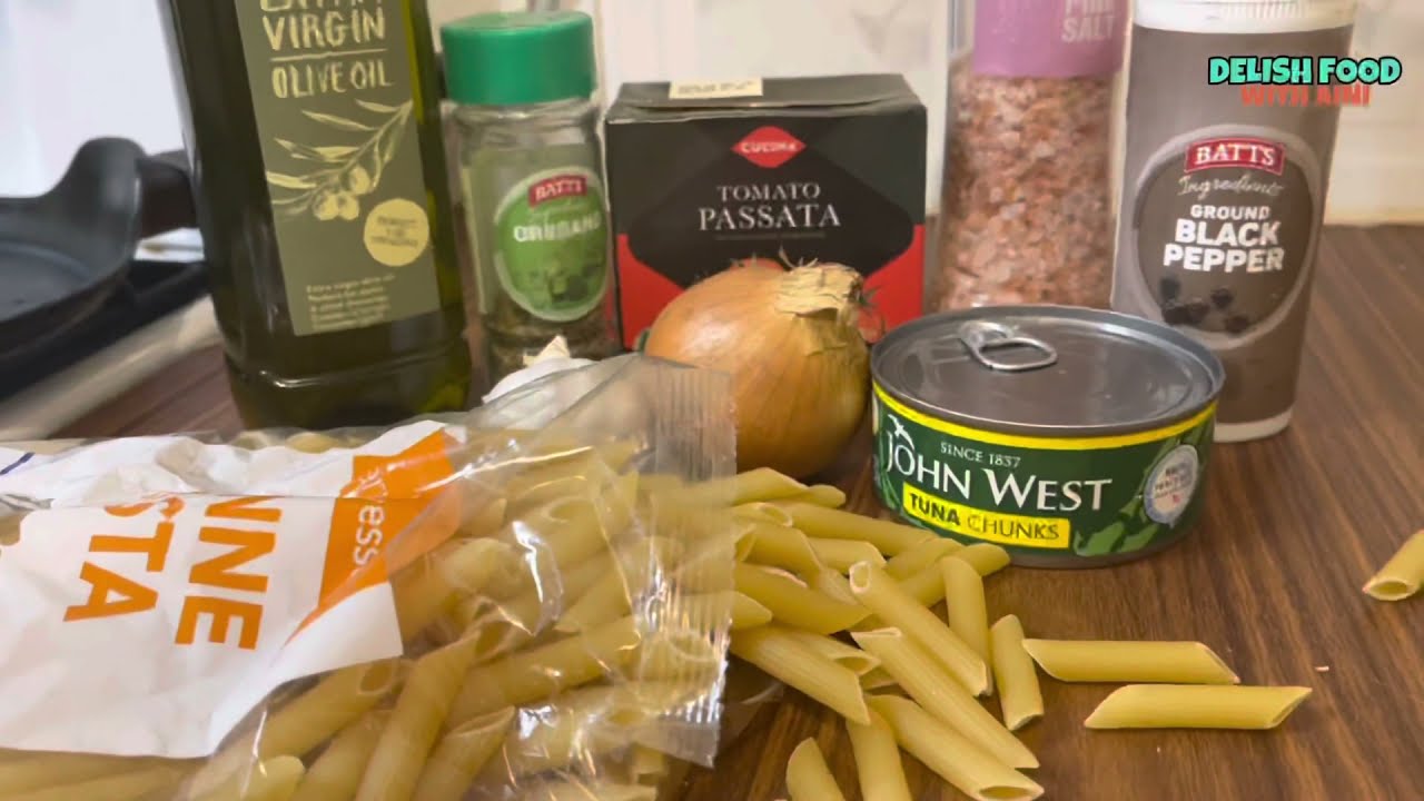 Hot water Add pasta and salt oil cover for 10 to 15 minutes And other side Prepare Tuna Sauce Add oil In a pan Sauté onion and garlic and then add tuna chunks three minutes Add all spices and tomato paste mix it well cook five minutes in high flame Cover few minutes pasta sauce is ready