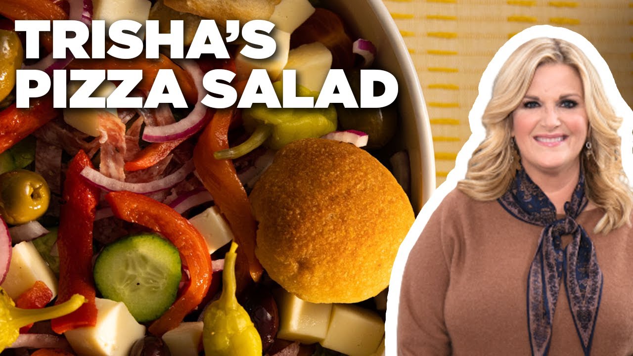 Trisha Yearwood’s Pizza Salad with Pesto Stuffed Croutons | Trisha’s Southern Kitchen | Food Network