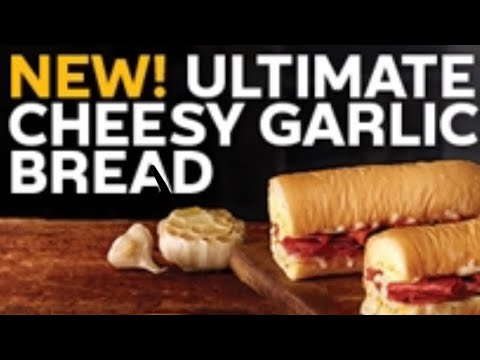 Ultimate Cheesy Garlic Bread features your choice of bread lathered and toasted with a mixture of garlic butter, Parmesan cheese and mozzarella cheese/Ultimate Spicy Italian Sandwich: A combo of pepperoni, Genoa salami, plus your choice of sauce and veggies on new Ultimate Cheesy Garlic Bread.