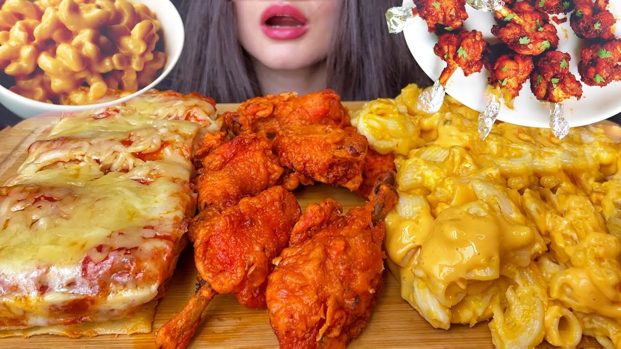 ASMR CHICKEN LOLLIPOP, LASAGNA + MAC N’ CHEESE MUKBANG (No Talking) EATING FOOD | Zulfia ASMR, asmr eating sounds, asmr food, asmr eating, asmr mukbang