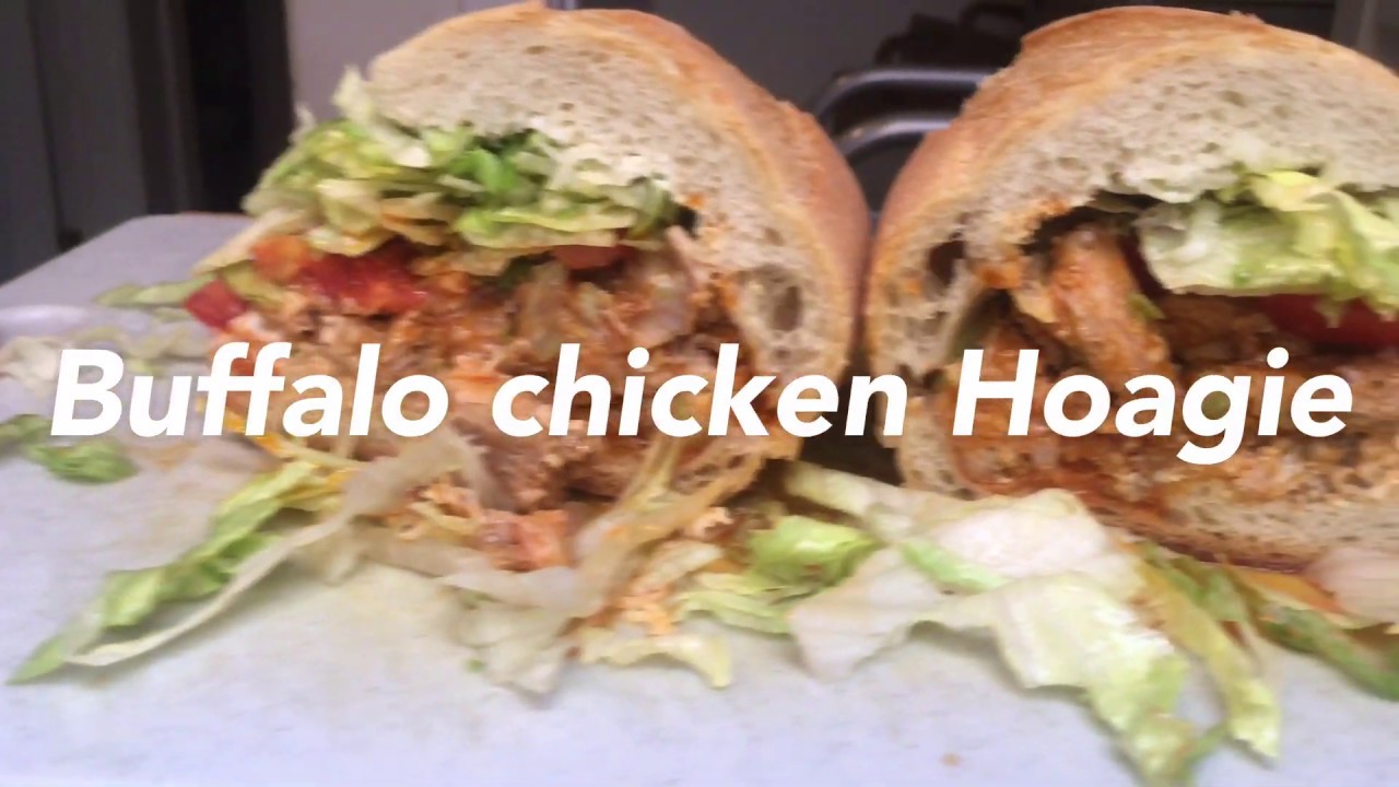 Building the Hoagie: Mayo on bread, add buffalo chicken, shredded lettuce and tomato