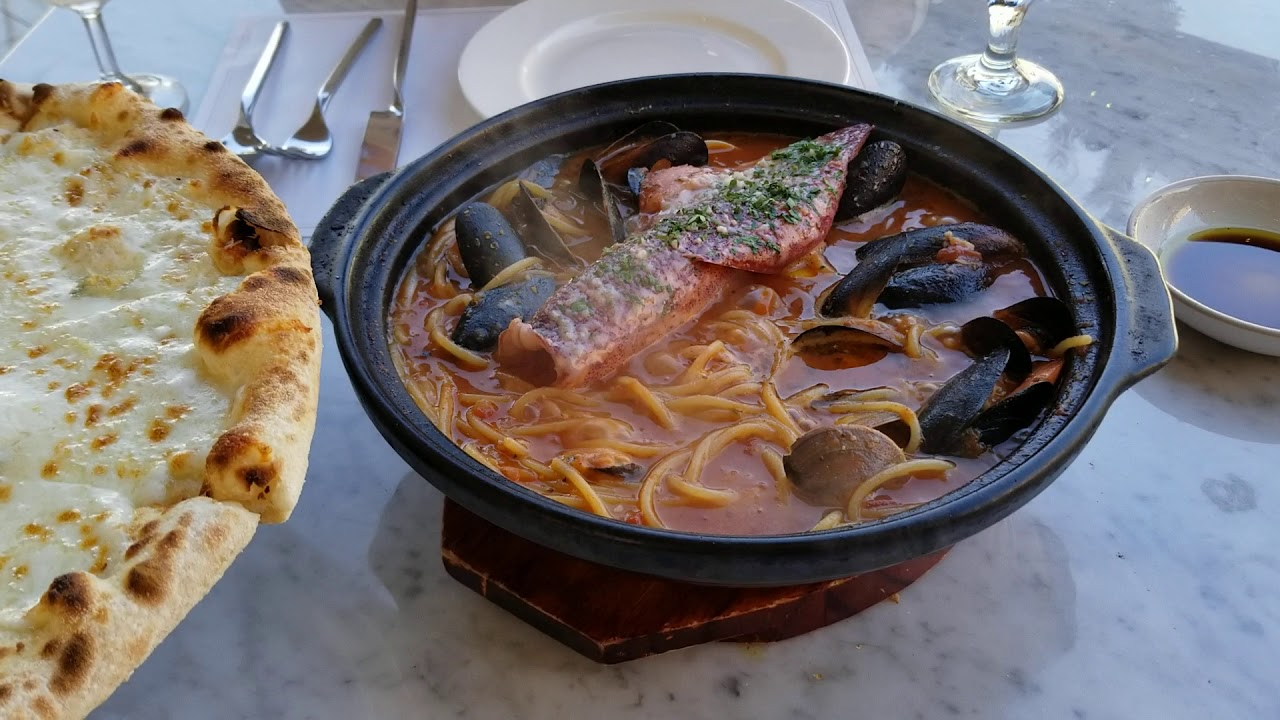 Il Palco Cioppino and Gorgonzola Pizza