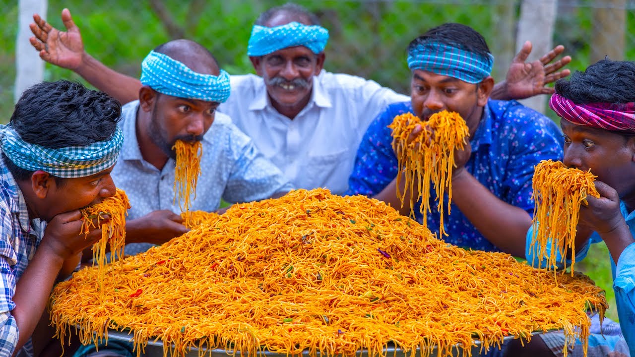 Today in our village, we cook traditional Chinese Hakka noodles recipe using colorful veggies. We first boiled the Hakka noodles in hot water and we cook it with veggies.