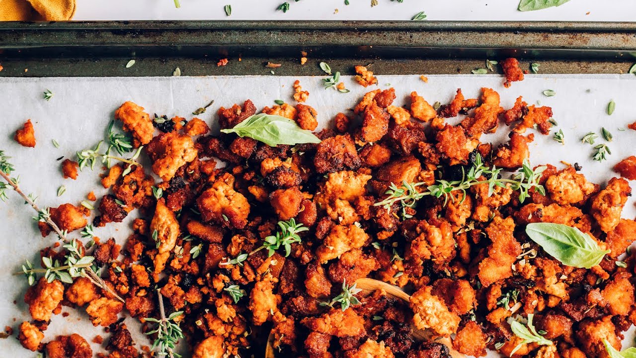 Crispy tofu that tastes like pizza! A simple, endlessly versatile, and protein-packed topping for polenta, pasta, wraps, and beyond! Vegan, gluten-free, and bursting with herby goodness!
