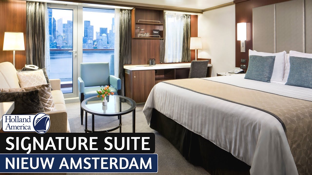 Join Danny as he tours a beautiful Signature Suite aboard the Holland America Nieuw Amsterdam. These are a great entry level suite class room. They offer more amenities than a traditional Verandah, and more space without taking that extra step up to one of the Neptune Suites.