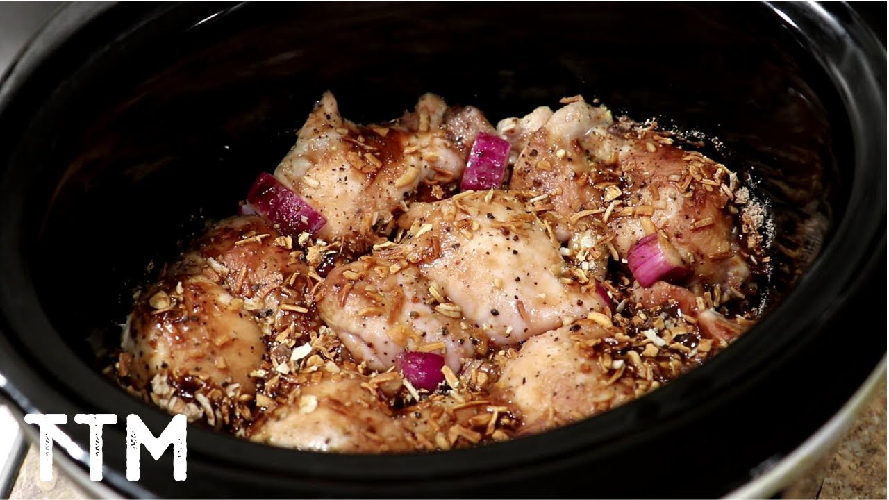 In this easy cooking video, I make some onion chicken in my crock pot, or slow cooker. The ingredients to this easy slow cooker chicken recipe are a package of boneless skinless chicken thighs, a sweet Italian red onion, and a 1.4 oz package of French Onion Soup Mix. The cooking time about 3 hours on high or 4-6 hours on low.