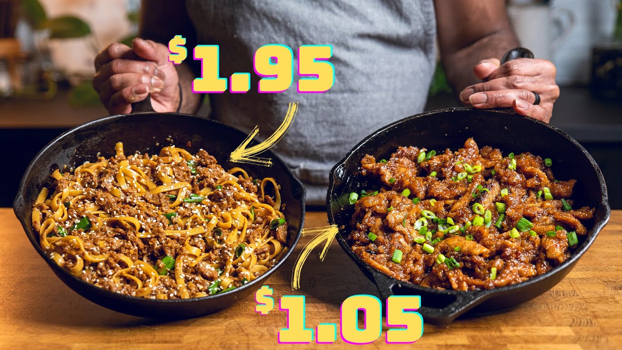 Restaurant food is simply overpriced. We’ve got 2 vegan dinner ideas for $1.95 (PER SERVING!) or less! Today let’s learn how to make Vegan Mongolian Beef at home 2 ways! We’re teaching you How to Make Vegan Mongolian Noodles and Vegan Mongolian Soy Curls. Both are completely Meatless Recipes!