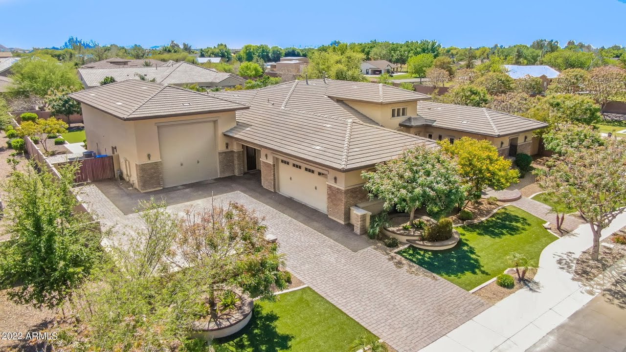 True luxury home in gated community with basement, resort style yard & RV garage (50×22) on 26,076 SF lot! Over $200K invested in recent remodel! Gourmet kitchen with professional series Bertazzoni Italian appliances; 5 burner gas cooktop/griddle/range, micro, stainless steel hood & triple door Thermador refrigerator! High-end quartz countertops, pot filler, copper farmhouse sink & walkin pantry! Home has custom touches throughout including imported 2ft x 3ft Comblanchien tile, white oak hardwood floors, cashmere carpet, Restoration Hardware light fixtures, family rm wood beams! Master bed walkin steam shower with multiple shower heads! Collapsible doors open to gorgeous yard with travertine patio, pebbletec salt water diving pool & pergala, sports court & more! Additional features of home: Large master closet, barn door in master, 60-gallon tub, secondary bedroom walk in closets, custom basement banister, ice maker, wine chiller. Additional features of property: RV garage storage cabinets, epoxy floors & Tesla charging station in both garages, gas fire pit, artificial turf, gated courtyard, commercial grade misting system, RV gate/parking pad, planter boxes, outdoor landscaping lights, built in BBQ, aluminum pergala, 4 citrus trees; mandarin orange, orange, myer lemon & key lime. For more information contact Justin Cook with Remax Solutions at 602-405-2665/justincook@remax.net