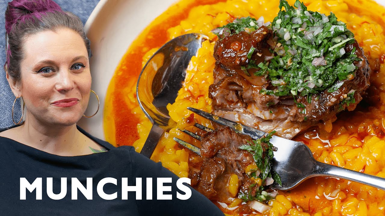 Karen Akunowiscz, chef/owner of Boston’s Fox & the Knife and Bar Volpe, makes her version of osso buco, a classic braised Italian dish. Karen uses lamb shank for her osso buco and adds rose harissa in her braise for a unique flavor, and makes a rich saffron risotto and a bright herb gremolata spiked with ginger.