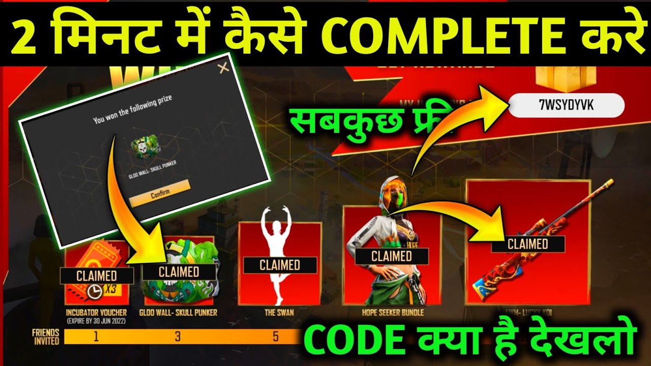 free fire new FF max rewards event kaise complete karein,,