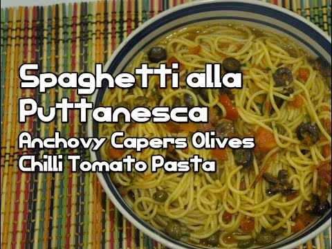 Spaghetti alla puttanesca (pronounced [spaˈɡetti alla puttaˈneska]; literally “spaghetti in the garbage style” or “spaghetti in the whore’s style” in Italian) is a tangy, somewhat salty Italian pasta dish invented in the mid-20th century. The ingredients are typical of Southern Italian cuisine: tomatoes, olive oil, olives, capers and garlic. Various accounts exist as to when and how the dish originated, but it likely dates to the mid-twentieth century. The earliest known mention of it is in Raffaele La Capria’s Ferito a Morte (Mortal Wound), a 1961 Italian novel which mentions “spaghetti alla puttanesca come li fanno a Siracusa (spaghetti alla puttanesca as they make it in Syracuse)”. The sauce became popular in the 1960s, according to the Professional Union of Italian Pasta Makers. The 1971 edition of the Cucchiaio d’argento (The Silver Spoon), one of Italy’s most prominent cookbooks, has no recipe with this name, but two which are similar: The Neapolitan spaghetti alla partenopea, is made with anchovies and generous quantities of oregano; while spaghetti alla siciliana is distinguished by the addition of green peppers. In a 2005 article from Il Golfo—a daily newspaper serving the Italian islands of Ischia and Procida—Annarita Cuomo asserted that sugo alla puttanesca was invented in the 1950s by Sandro Petti, co-owner of Rancio Fellone, a famous Ischian restaurant and nightspot. According to Cuomo, Petti’s moment of inspiration came when—near closing one evening—Petti found a group of customers sitting at one of his tables. He was low on ingredients and so told them he didn’t have enough to make them a meal. They complained that it was late and they were hungry. “Facci una puttanata qualsiasi,” or “Make any kind of garbage,” they insisted. Petti had nothing more than four tomatoes, two olives and some capers—the basic ingredients for the sugo, “So I used them to make the sauce for the spaghetti,” Petti told Cuomo. Later, Petti included this dish on his menu as spaghetti alla puttanesca. The sauce alone is called sugo alla puttanesca in Italian. Recipes may differ according to preferences; for instance the Neapolitan version is prepared without anchovies, unlike the version popular in Lazio, and chili peppers are sometimes added. In most cases, however, the sugo is a little salty (from the capers, olives, and anchovies) and quite fragrant (from the garlic). Traditionally, the sauce is served with spaghetti, although it also goes well with penne, bucatini, linguine and vermicelli. Chopped garlic and anchovies (omitted in the Neapolitan version) are sautéed in olive oil. Chopped chili peppers, olives, capers, diced tomatoes and oregano are added along with salt and black pepper to taste. The cook then reduces this mixture by simmering and pours it over spaghetti cooked al dente. The final touch is a topping of parsley.